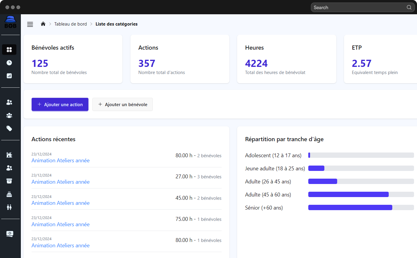 BOB regroupe tous les outils dont votre association a besoin pour gérer efficacement ses bénévoles et ses activités.